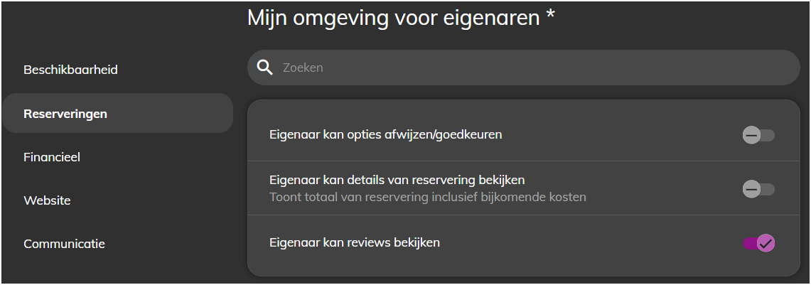 Onder het tabje Reserveringen kun je aangeven dat de eigenaren de reviews mogen bekijken.