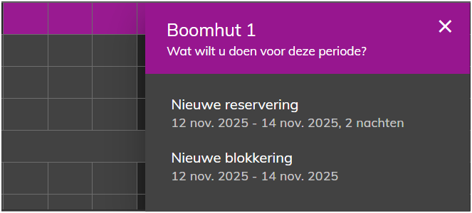 Om een gast aan te maken via een reservering selecteer je de verblijfsdatum in het planbord en kies voor 'Nieuwe reservering'.