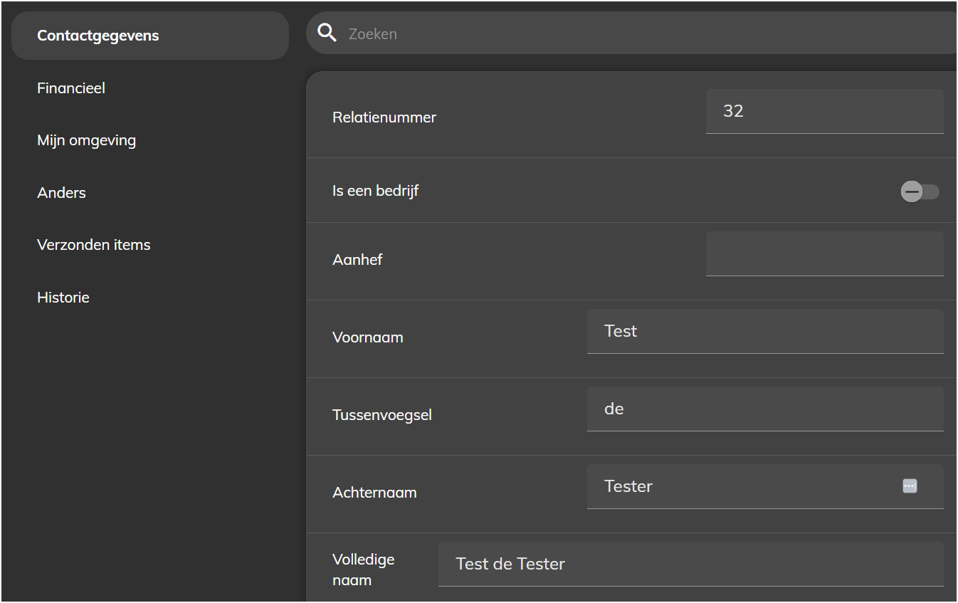 Bij het invoeren van de naam wordt de volledige naam automatisch samengesteld en kan later worden gebruikt in een samengevoegd veld in brieven en mailings.