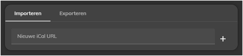 Standaard opent het scherm op 'Importeren', hier kun je iCal-links van andere platforms plakken, om de iCal-link van Bookzo op te halen klik je op 'Exporteren'.