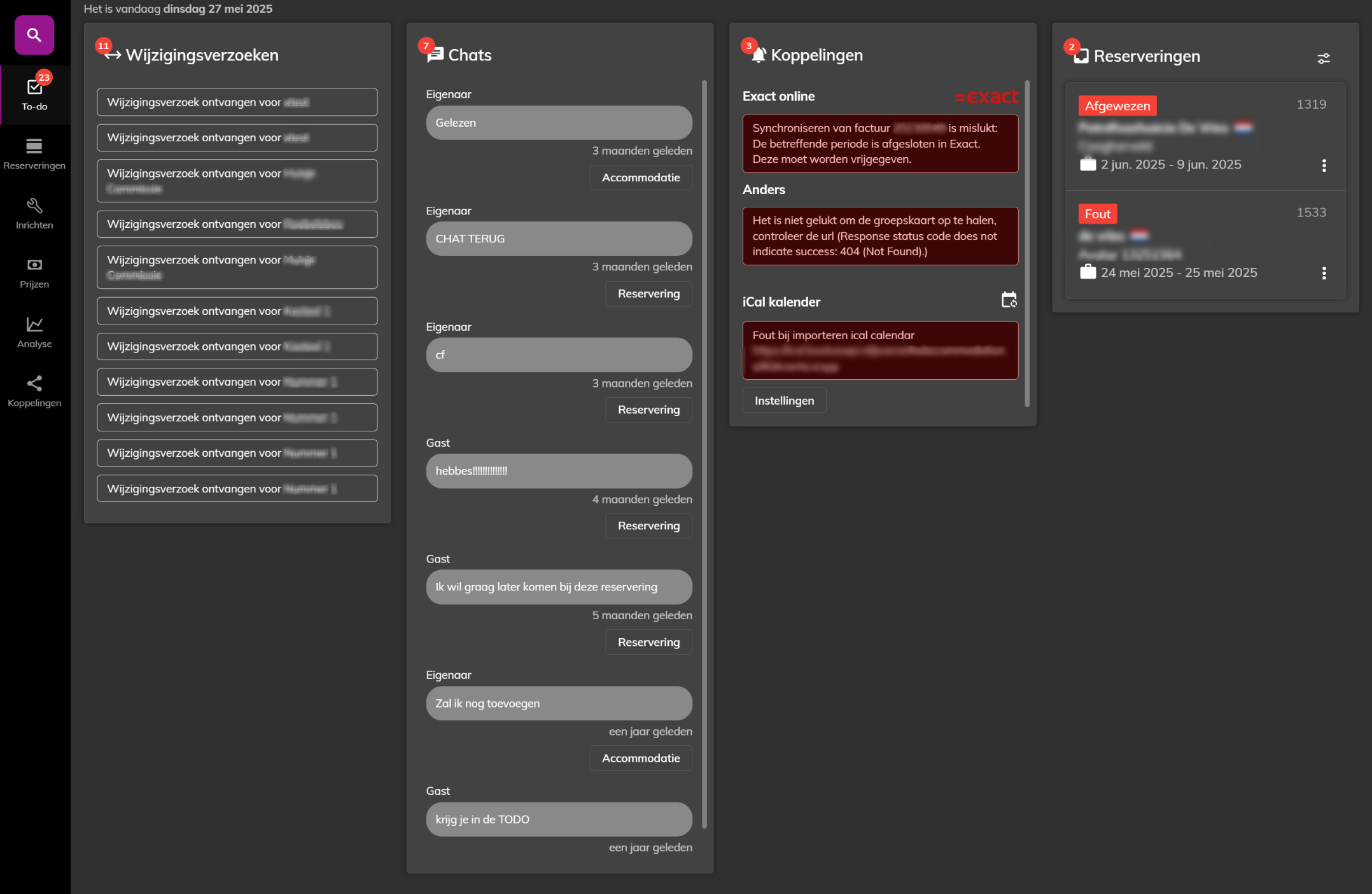 De To-do punten verdwijnen uit het overzicht als de reserveringen zijn opgeslagen als bevestiging of factuur en bij Koppelingen de fouten zijn opgelost.