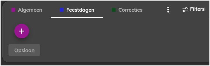 Feestdagen zoals bijvoorbeeld de Zwarte Cross staan niet in dit overzicht, omdat deze niet landelijk voorkomen. Wel kun je deze toevoegen door, boven aan de lijst met de te selecteren feestdagen, op het paarse plusje te klikken.