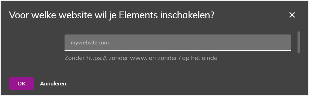 Let op! De URL vul je in zonder https://, zonder www. en zonder / op het einde.