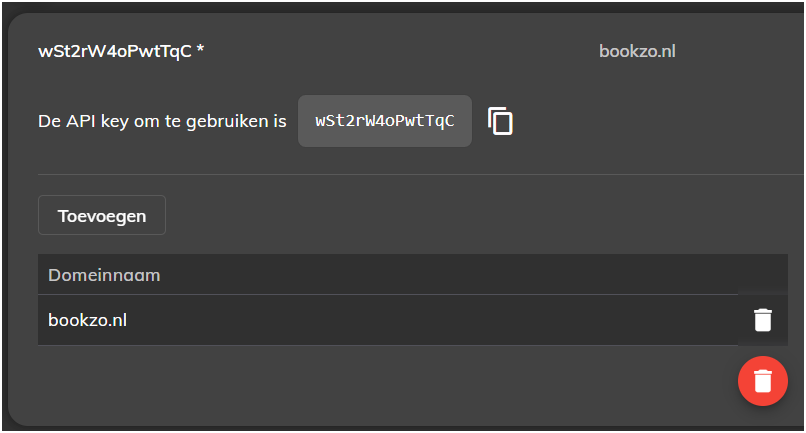 Aan dezelfde API kun je meerdere domeinnamen (URL's) toevoegen of je kunt nogmaals op API key toevoegen drukken wanneer je een unieke API wilt voor een andere URL.
