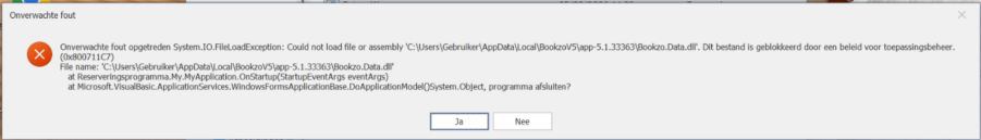Na een update of herinstallatie van Bookzo Desktop kan het voorkomen dat Windows een melding geeft dat een bestand van Bookzo wordt geblokkeerd. Dit wordt veroorzaakt door de beveiligingsfunctie Smart App Control van Windows.